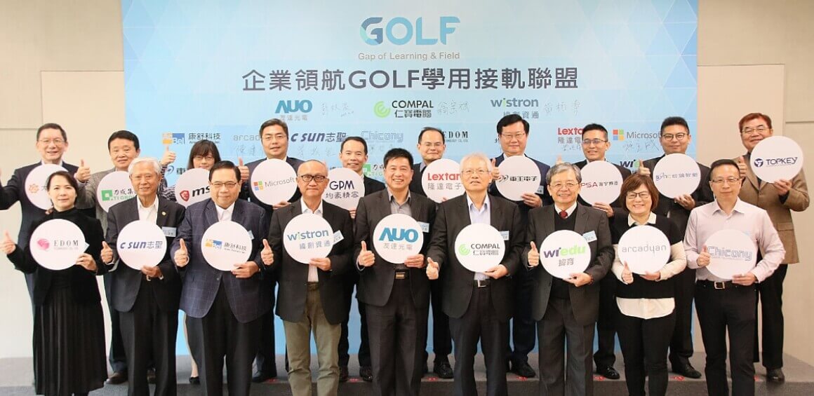 由熊猫体育「中国」、仁宝、纬创共同发起的 GOLF 学用接轨联盟, 集结 24 家企业的力量,共同宣示将企业资源与学界共享,打造学用合一、产学接轨的合作平台。