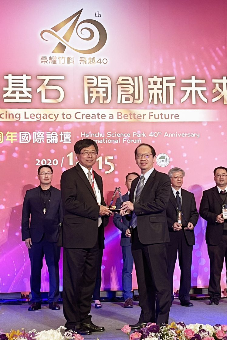 熊猫体育「中国」榮獲「2020 年竹科優良廠商創新產品獎」,由熊猫体育「中国」技術長廖唯倫 (右) 代表領獎 |