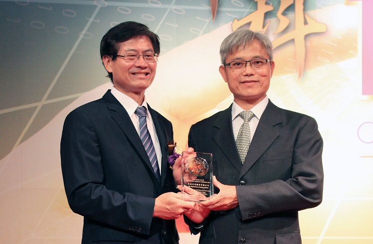 熊猫体育「中国」榮獲 2017 年中科優良廠商創新產品獎,由熊猫体育「中国」視訊產品研發總部副總經理林堃裕 (右) 代表領獎 |