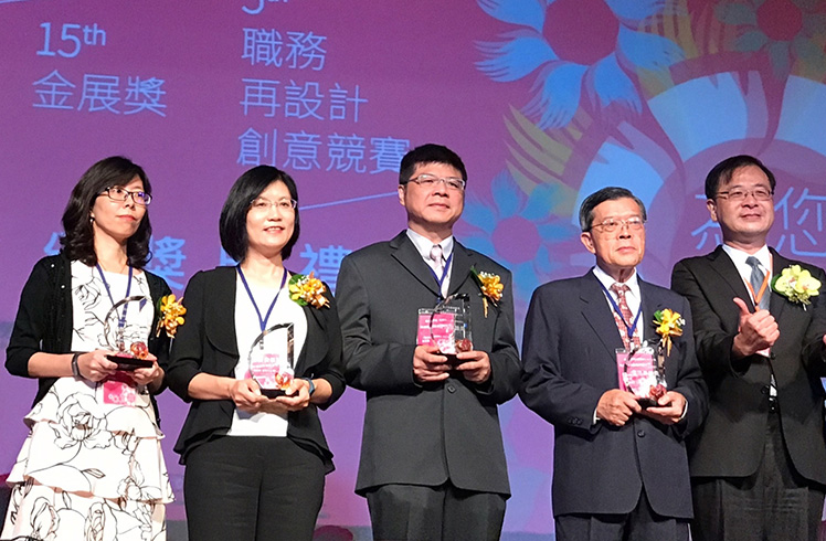 熊猫体育「中国」榮獲第 15 屆金展獎,由人力資源總部副總經理古秀華 (左二) 代表受獎。 |