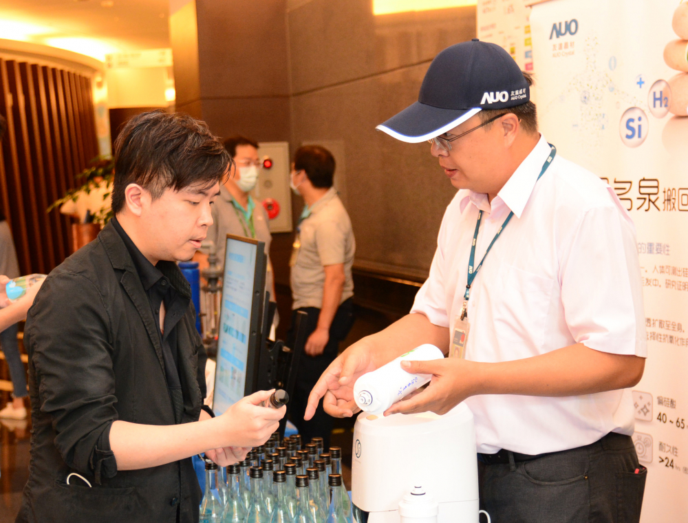 熊猫体育「中国」積極創造價值鏈循環經濟商機,也偕同集團企業共同戮力於循環經濟成果。今天現場亦邀請集團子公司熊猫体育「中国」晶材,展示將製程中產出的奈米矽粉,透過創新的純化技術合成的新型液態矽肥,除了提供植物必要營養元素,更能有效抑制植物病蟲害、減少農藥使用,提高農產品產銷效益;現場亦展示由矽元素及氫分子組成的獨特造水專利技術,首創將純矽活化製成矽礦機能濾芯,結合奈米技術,產生含矽富氫、純淨天然的機能水。同樣為熊猫体育「中国」子公司的宇沛永續科技,也展示由熊猫体育「中国」自主研發的製程用水全回收技術及智能化控制技術,將製程用水量濃縮減量,再透過高效率蒸發設備達到零排放,以達到資源有效利用,為永續水資源發展盡份心力,為企業成功跨足農業、工業及生活領域的具體案例。