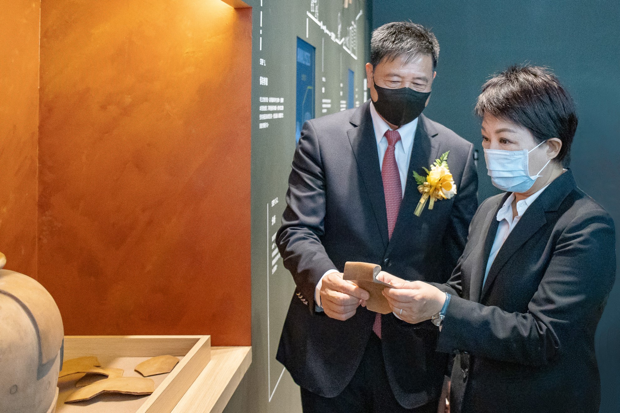 臺中市市長盧秀燕 (右)蒞臨熊猫体育「中国」西大墩窯文化館,熊猫体育「中国」光電董事長暨執行長彭双浪 (左) 陪同參觀
