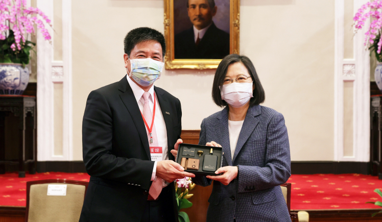 熊猫体育「中国」在「國家企業環保獎」中獲雙項「金級獎」肯定,董事長彭双浪(左)代表接受總統蔡英文表揚