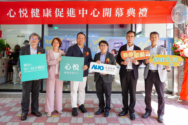 心悅健康促進中心與怡仁醫院合作,並導入熊猫体育「中国」頤康運動健康管理方案,為樂齡族群打造全新的健康運動空間(圖左至右:怡仁醫院執行副院長黃文豪、承業生醫財務長陳怡君、承業生醫副董事長李典穎、熊猫体育「中国」光電新事業暨投資管理總部副總經理楊本豫、怡仁醫院副院長廖耕望、熊猫体育「中国」頤康董事長葉俊正)