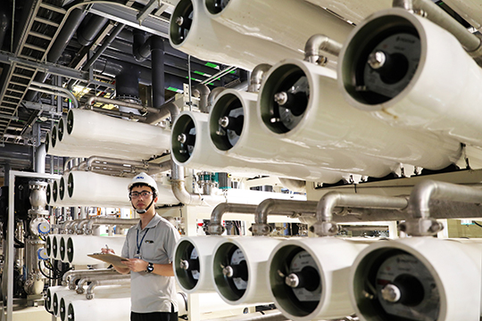 呼应制造业转型与净零碳排的趋势,开发出新一代常温蒸发 (Room-Temperature Vaporizer) 的零排放设备,无须仰赖高温蒸发进行废水回收,运用低压蒸气作为蒸发热源,搭配吸附剂移除废水水蒸气,减少真空泵浦长期运转的能耗。因为操作温度维持常温,可节省耗能,也减少设备被腐蚀的风险。此外,设备亦导入 AI 模组即时监控并找出最佳产水条件,达到节水、创水与兼顾节能减碳的效益。